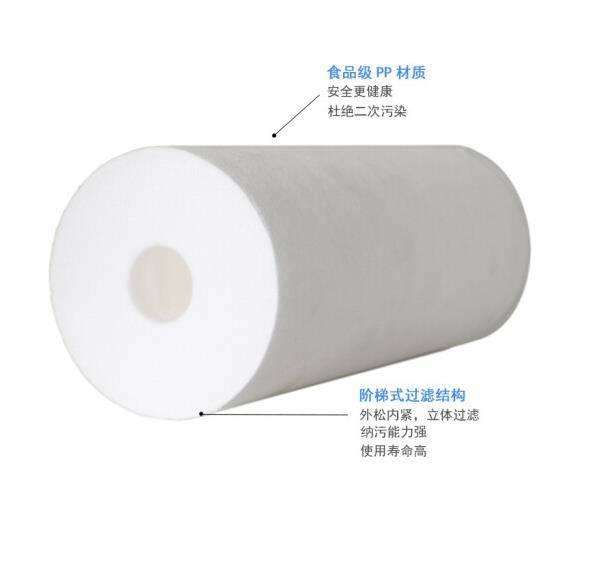 PP滤芯也叫做PP熔喷滤芯,熔喷过滤芯由聚丙烯超细纤维热熔缠结制成,纤维在空间随机形成三维微孔结构,维孔孔径沿滤液流向呈梯度分布,集表面、深层、精精过滤于一体,可截留不同粒径的杂质。滤芯精度范围0.5-100μm,其通量是同等精度峰房滤芯的1.5倍以上,可配置不同型号的端盖接头,满足各种工程安装的需要。