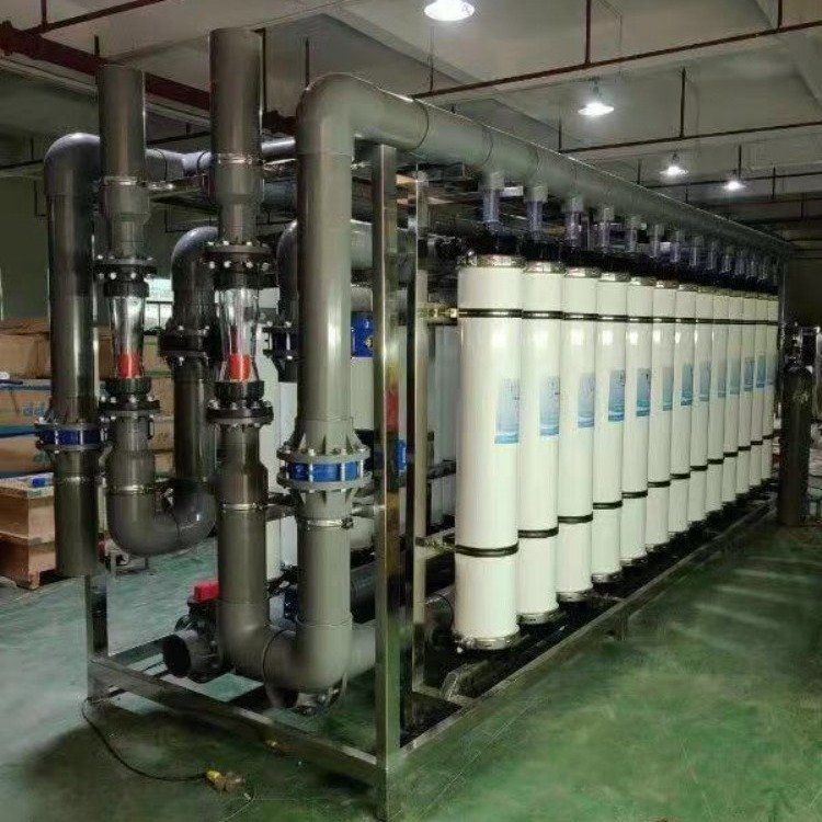 超滤是一种以筛分为分离原理,以压力为推动力的膜分离过程,过滤精度在0.005-0.01μm范围内, 可有效去除水中的微粒、胶体、细菌、热源及高分子有机物质。可广泛应用于物质的分离、浓缩、提纯。超滤过程无相转化,常温下操作,对热敏性物质的分离尤为适宜,并具有良好的耐温、耐酸碱和耐氧化性能,能在60℃ 以下,pH为2-11的条件下长期连续使用。